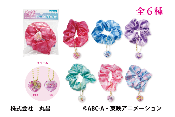 価格:税込 440円JAN:4950361 250155PKGサイズ:W105 × H150 × D3mm重さ:8gセット内容:チャームつきシュシュ1個 ※全6種● ハート型のチャームがついた可愛いシュシュ。バッグのアクセントやブレスレット替わりにも使える!