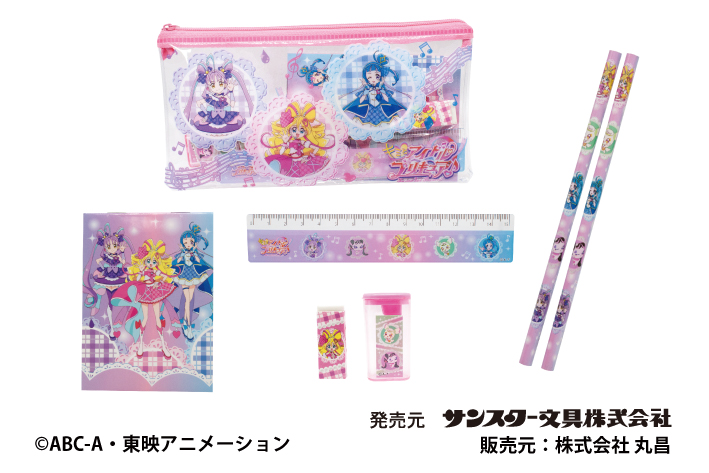 価格:税込 990円JAN:4950361 250070PKGサイズ:W200 × H115 × D15mm重さ:63gセット内容:ポーチ1個、メモ1冊、鉛筆2本、定規1本、消しゴム1個、鉛筆削り1個● 文具5点セットにポーチがついてる!